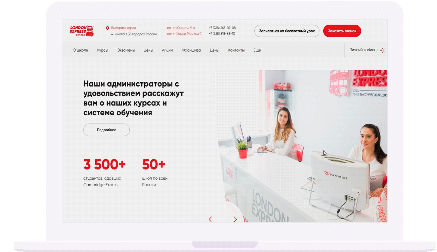 На действующем сайте london-express.ru будет создан поддомен вашей школы с гарантированным объемом ежемесячного трафика. Мы сотрудничаем с одной из ведущих компаний в области интернет-продвижения, которая занимается оптимизацией нашего сайта для обеспечения постоянного притока новых клиентов.